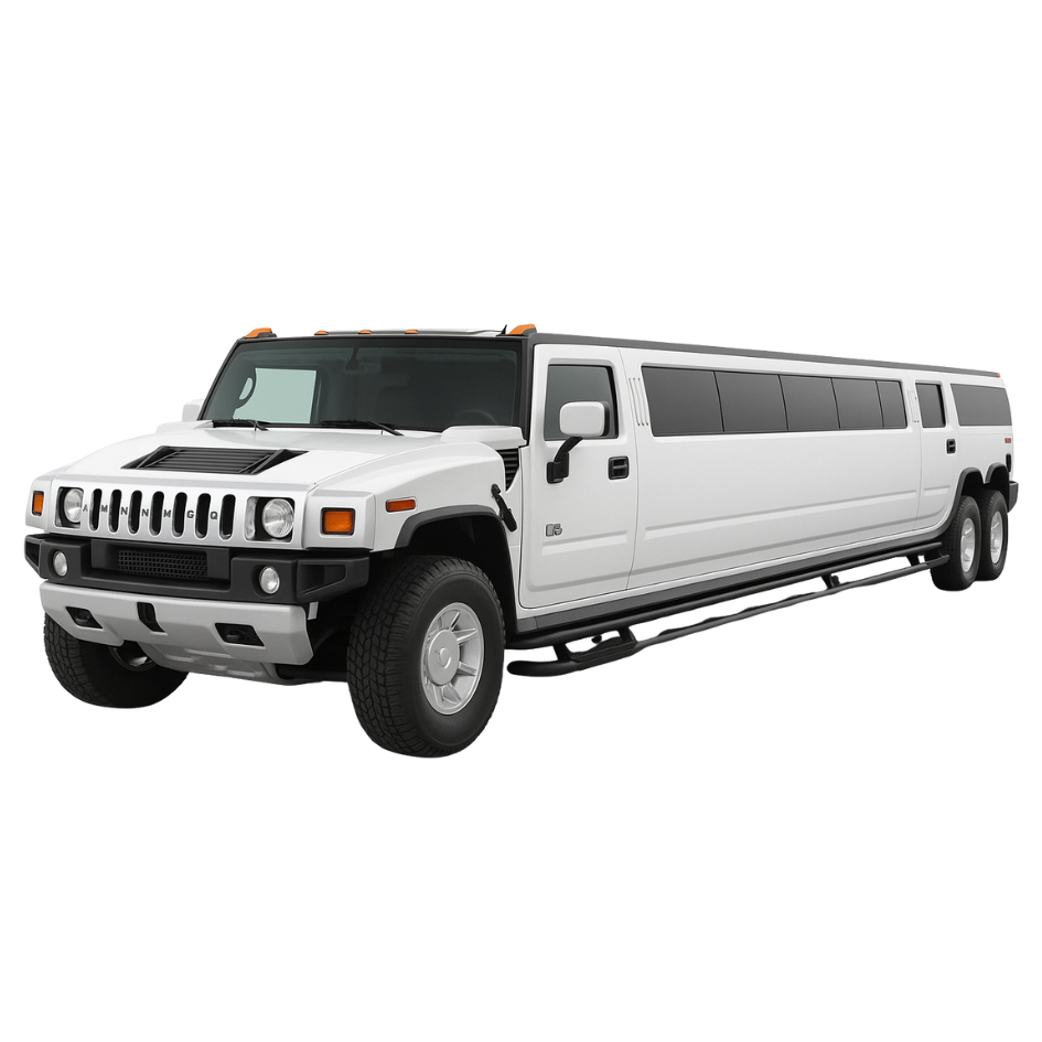 Luxury Hummer limousine with premium leather, climate control, advanced entertainment system.